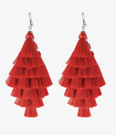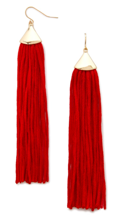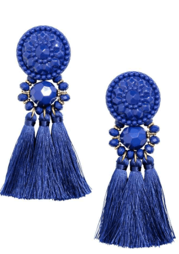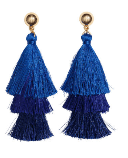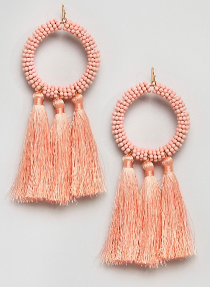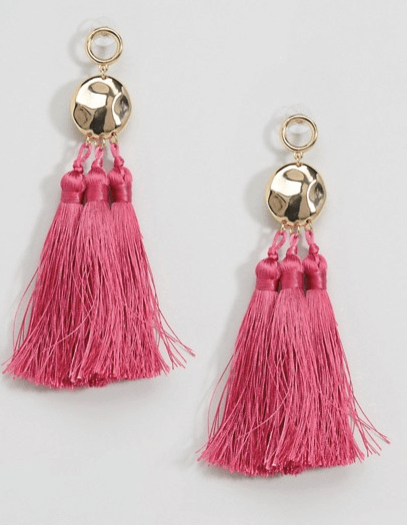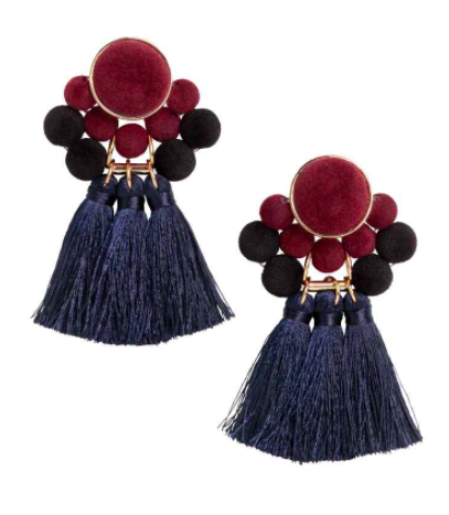 Une tenue n’est jamais totalement terminée sans la petite touche d’accessoires. Pour cela, rien de mieux que les boucles d’oreilles à pompons ou « tassel earrings » (pour nos amis anglo saxons).