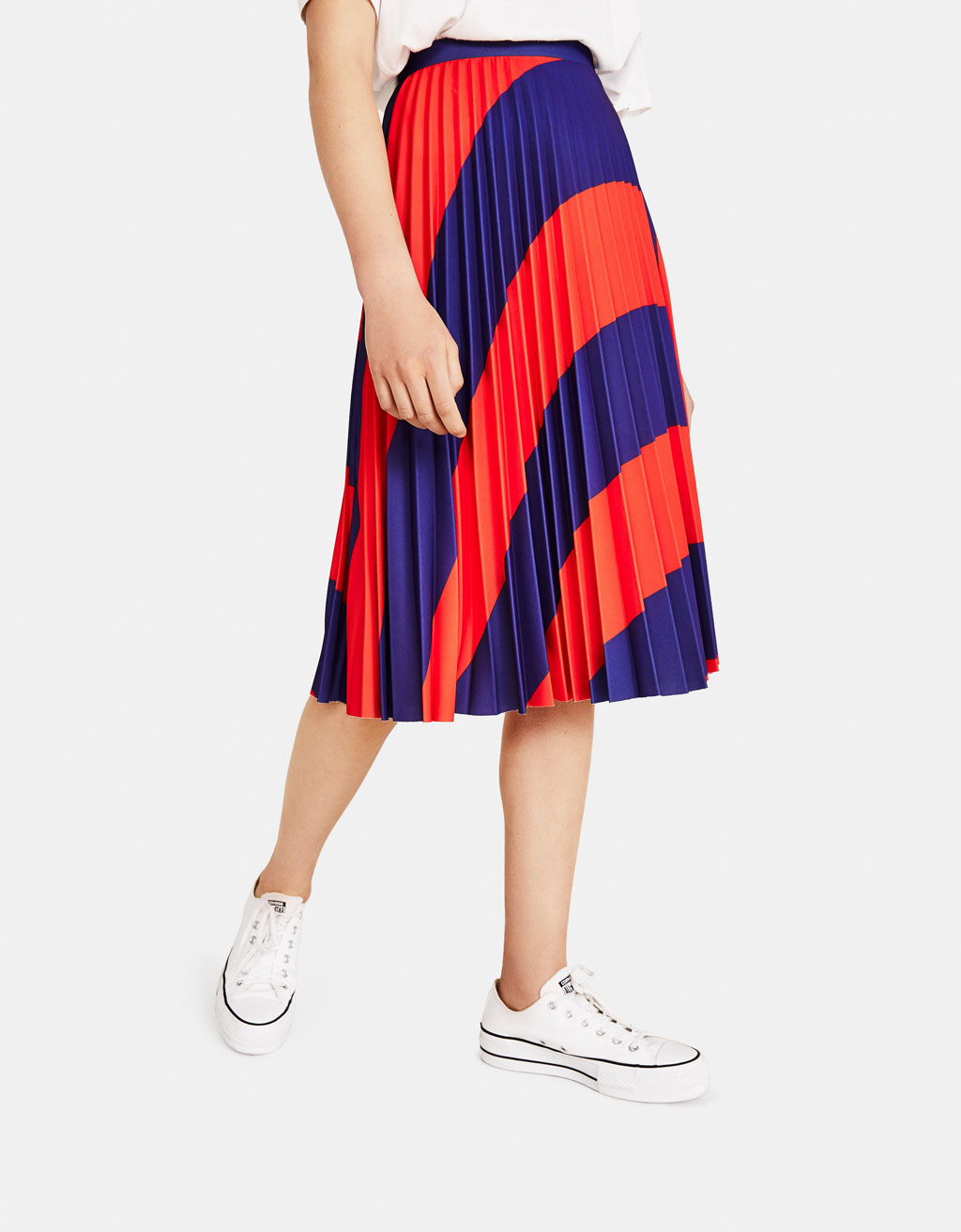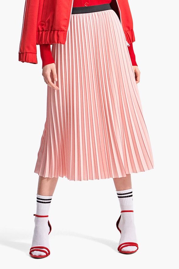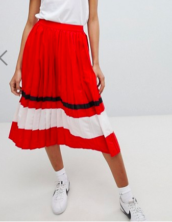 Jupe mi-longue plissée avec des rayures style sports ici