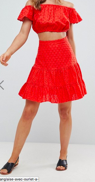 Jupe rouge broderie anglaise ici