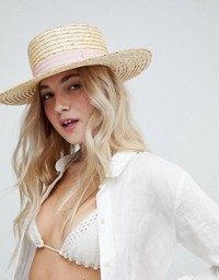 Canotier en paille avec ruban rose poudré South Beach ici