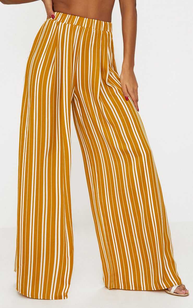 Pantalon ample rayures moutarde ici