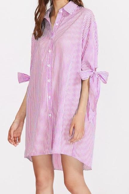 Robe chemise rayures rose et blance Shein ici