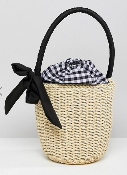 5. Sac en paille avec anse à carreaux vichy Asos ici