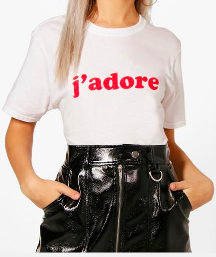 Robe rouge ici T shirt j’adore ici