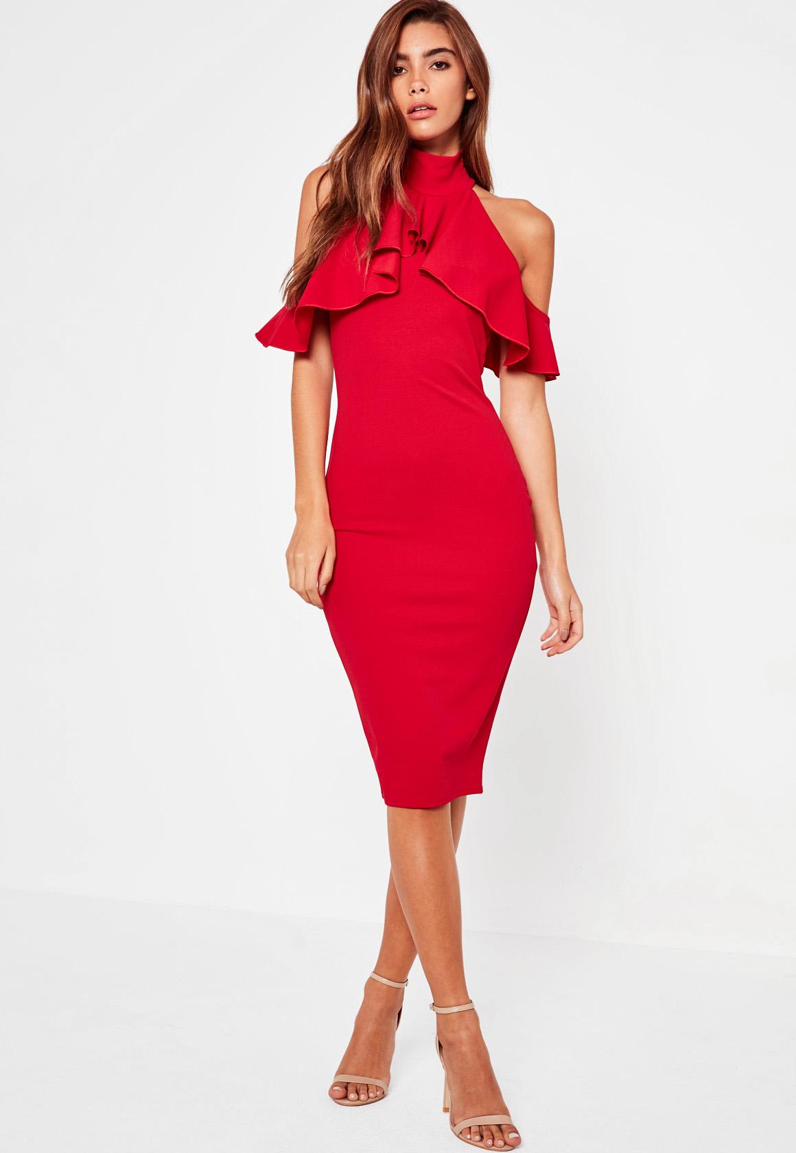Robe rouge épaules dénudées Missguided ici 37,50 euros